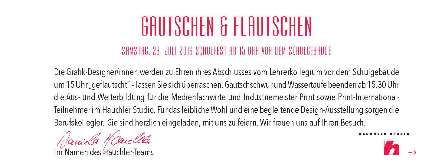 Flautschen ist eine Wortneuschöpfung und kommt vom Wort Gautschen - das ist ein Abschlussritual bei den Druckern. Also werden bei uns die Grafikdesigner "Geflautscht".